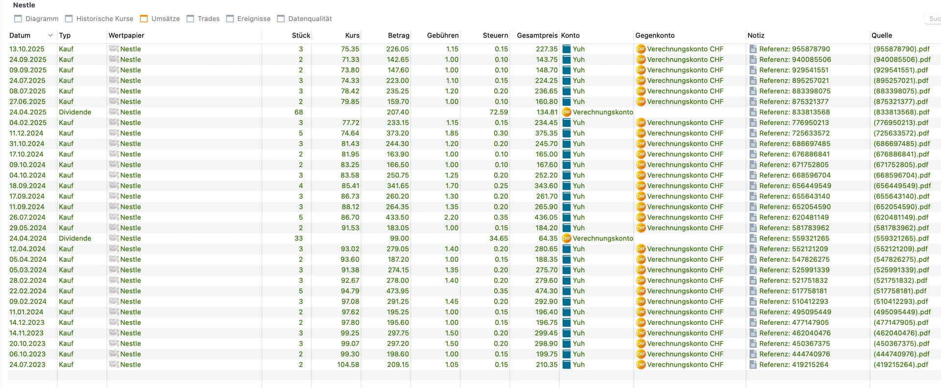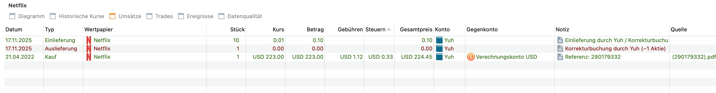 Du musst also deine Buchungen in PP mit den tatsächlichen Buchungen bei YUH abgleichen.