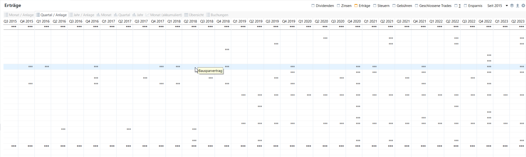 Ich möchte aber auch häufiger mal eine quartalsweise Ansicht haben, die dann so aussieht: