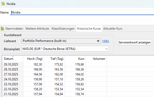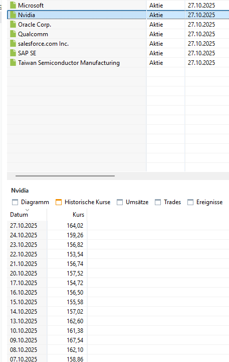 Dieses Datum haben bei mir alle inaktiven Wertpapiere als letztes Datum (historisch und letzter Handel). Ist Nvidia bei dir eventuell auf inaktiv gestellt?