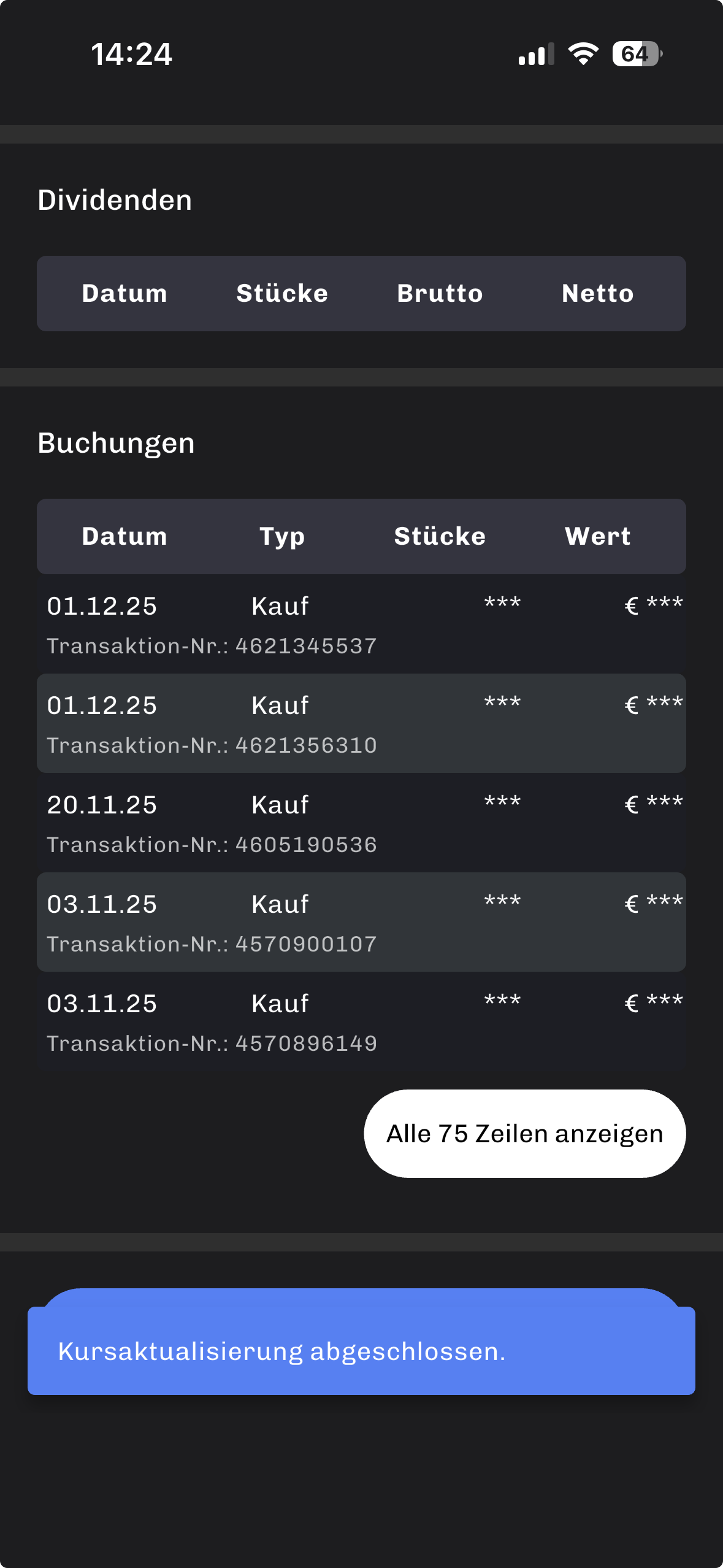 Ich würde gerne auch in der App bis auf den Level einer einzelnen Transaktion / einzelnen Buchung die Werte ansehen können.