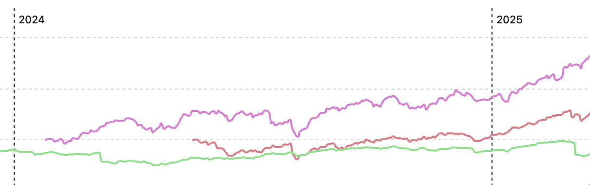 hast du auch gesehen, dass du nicht nur mehrere Aktien in einem Diagramm nebeneinander darstellen kannst, sondern auch ein Wertpapier (oder Index) als Benchmark hinzufügen kannst?