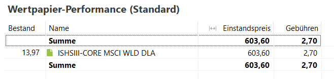 Einstandspreis (bzw. Einstiegspreis) = 603,60