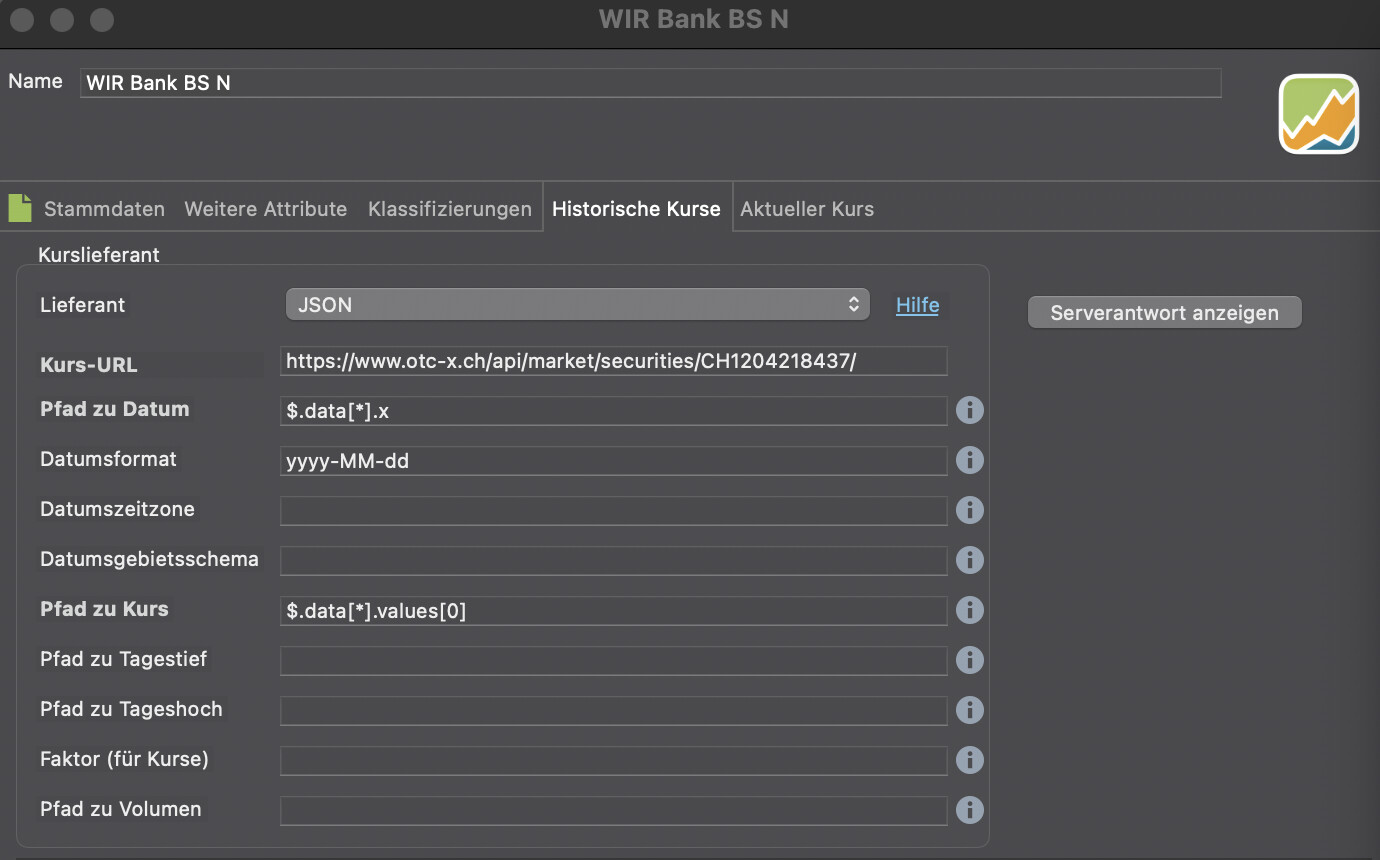 ich habe versucht, 50 Beteiligungsscheine der schweizerischen WIR-Bank via JSON in PP zu importieren: