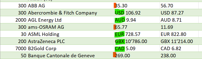 Im unteren Beispiel sollte wo die roten Markierungen sind ‘CHF’ stehen. Das würde den Import in Excel massiv erleichtern.