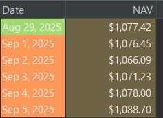 As seen in the attached image, the dates from September are highlighted in orange. It does not show up in the ‘Historical Quotes’ for the security.