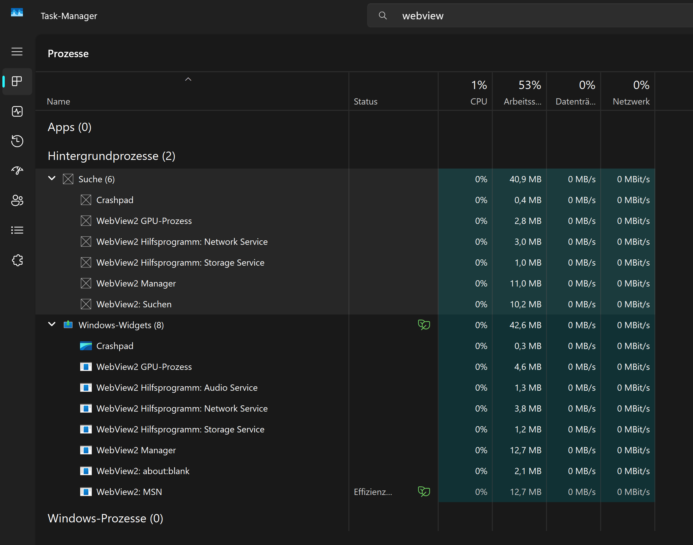 WebView2 sollte eigentlich standardmäßig bei Windows 11 vorinstalliert sein und im Hintergrund mitlaufen.