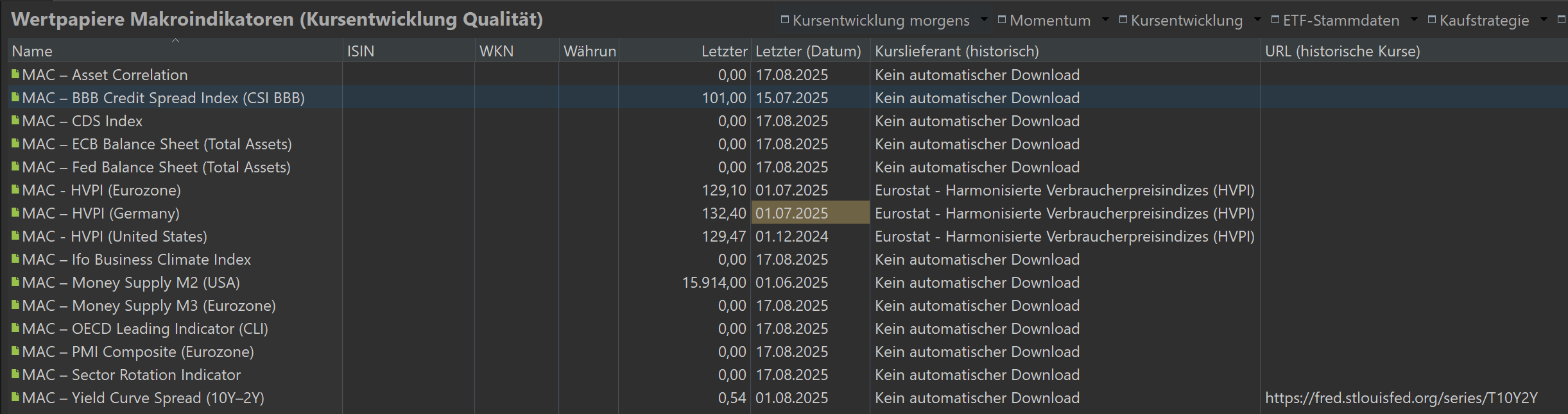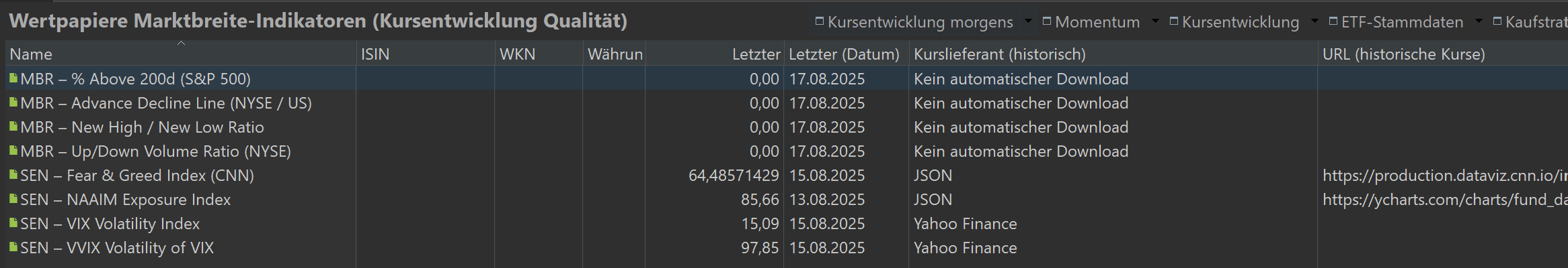 Ich hatte mir überlegt, in PP zwei Seiten für einen schnellen Marktüberblick anzulegen.