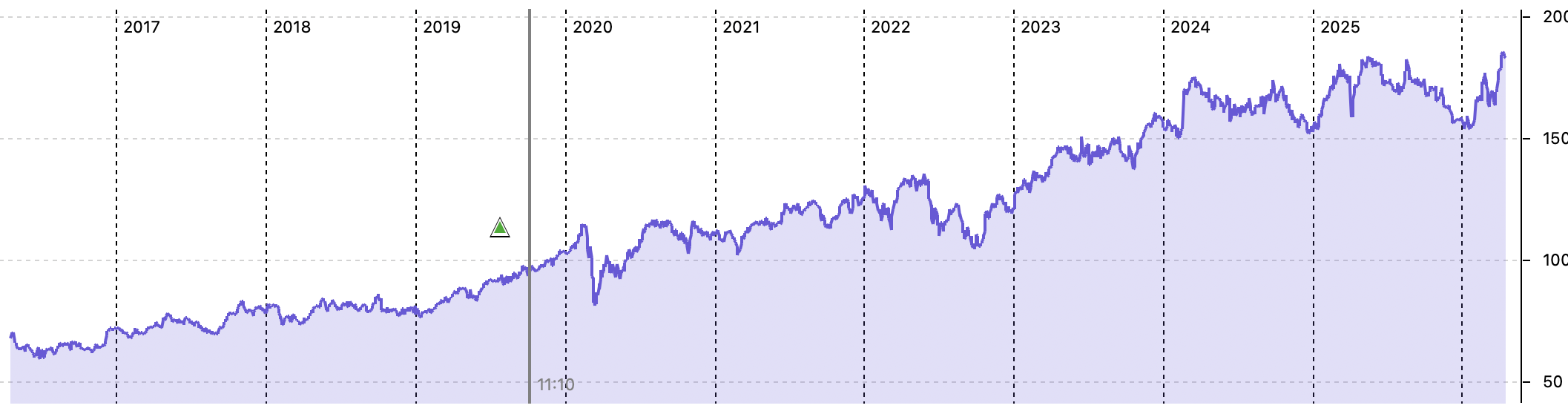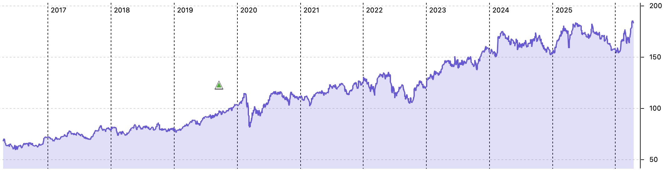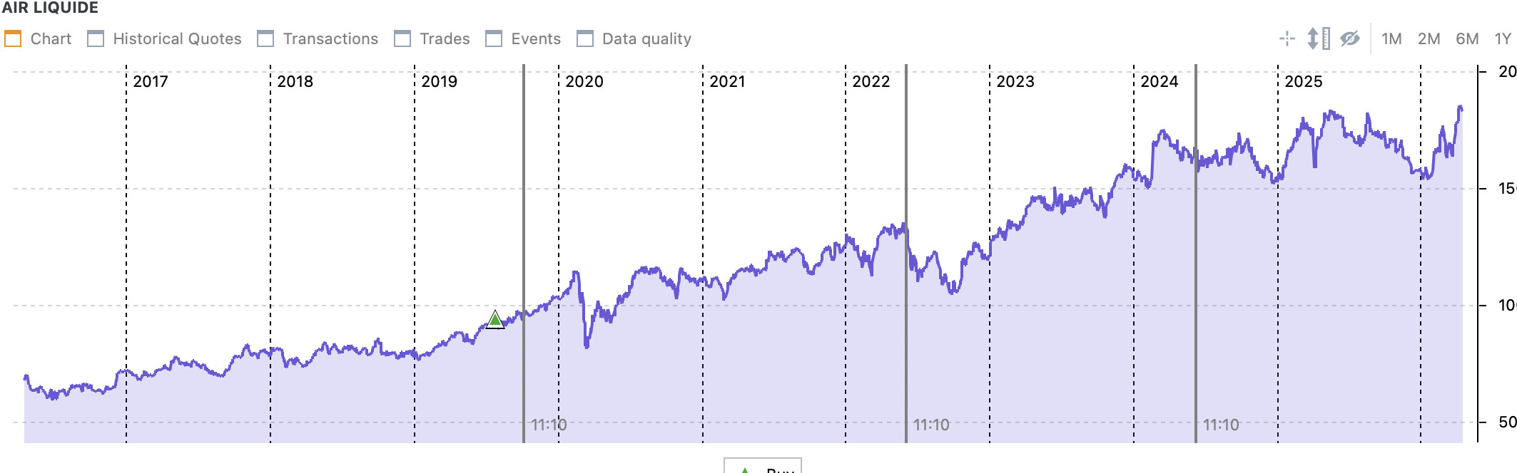Since then, there have been 3 stock split https://www.investing.com/equities/air-liquide-historical-data-splits