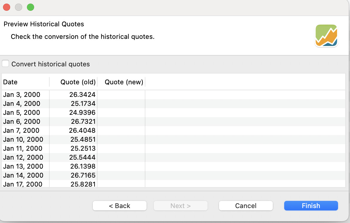 Unselect “Convert historical price”