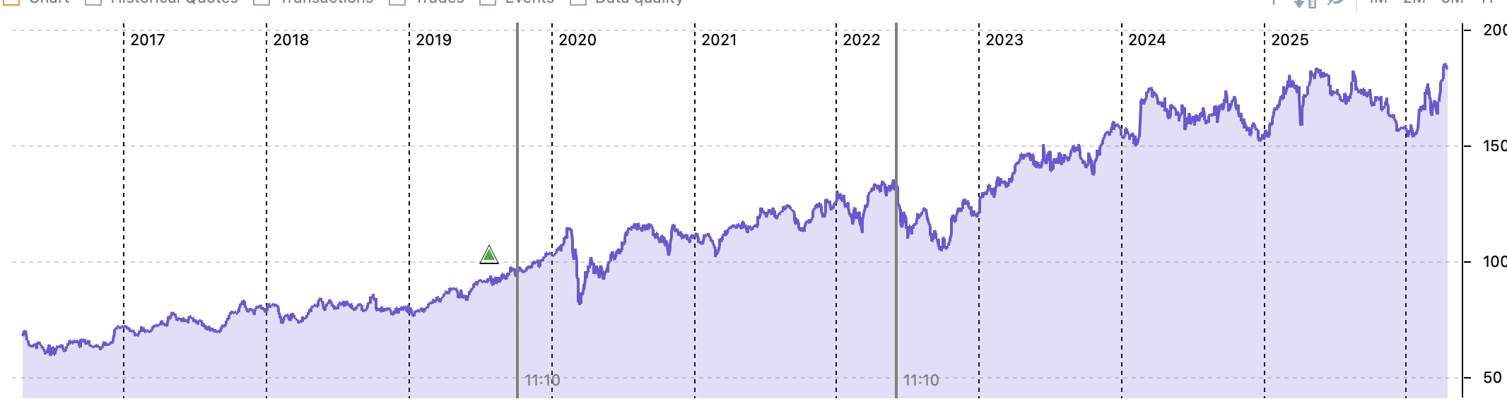 If I enter a purchase made a few years ago at the actual price at the time (e.g., €124), the PP chart displays a much lower price for that same date (e.g., €90) because it has been adjusted by the source.