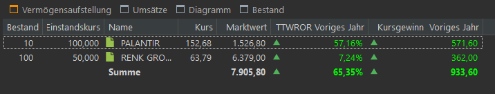 Die Bezeichnung “TTWROR Voriges Jahr” und “Kursgewinn Voriges Jahr” sind keine von PP vorgegebenen Beschriftungen. Die Frage wäre nun, was hast du dort für die Berechnung eingestellt?