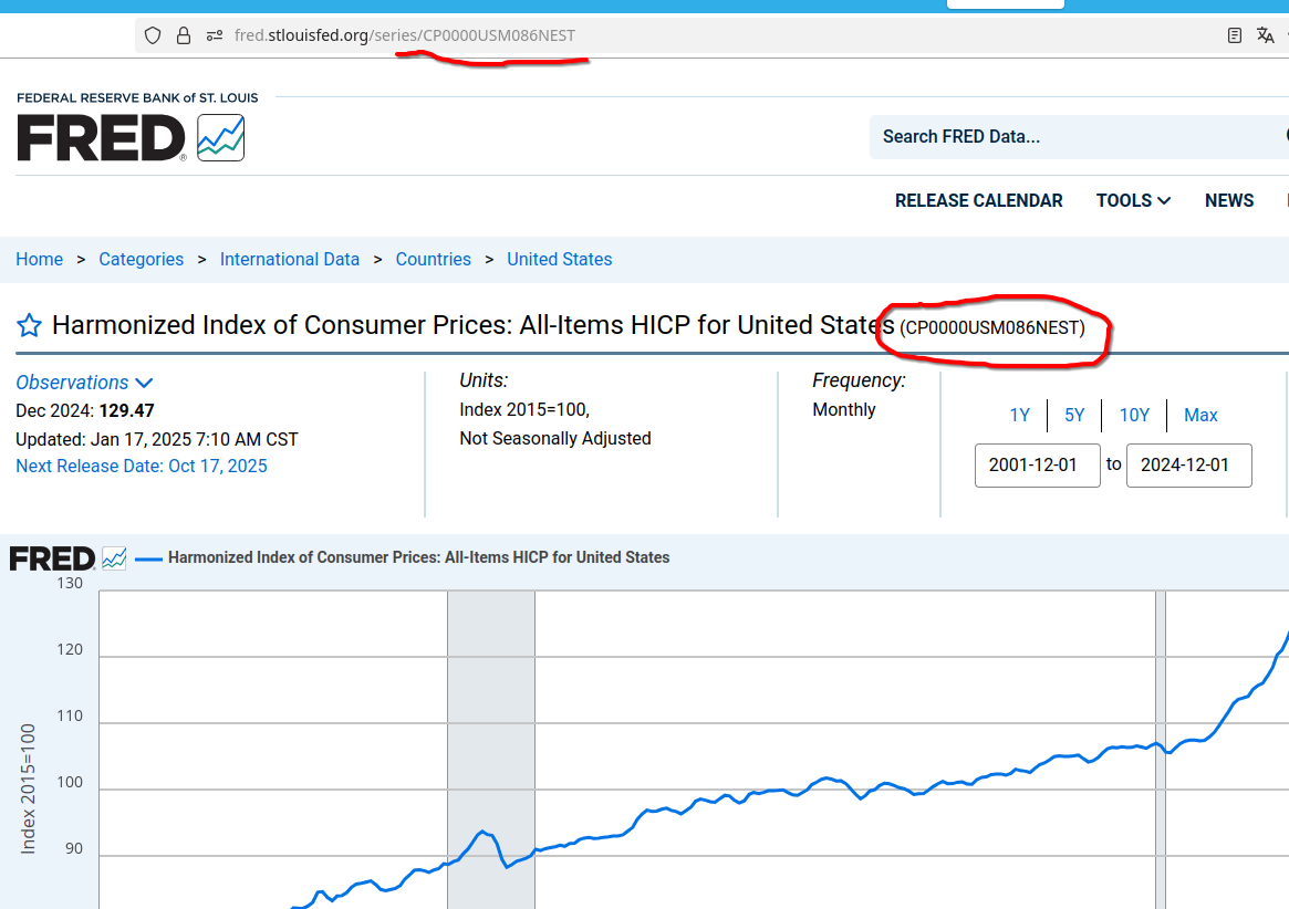 Ich habe mich jetzt für die Datenreihe CPIAUCNS auf FRED entschieden weil diese gleichwertig sind und empfolen wurden. Das funktioniert jetzt tadellos. Vielen Dank