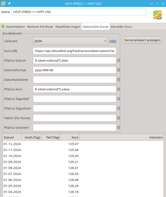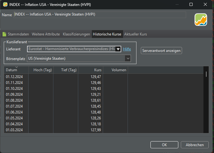Seit geraumer Zeit werden die Daten/Kurse für den HVPI USA bei mir nicht mehr aktualisiert. Es hatte immer problemlos funktioniert und ohne zutun dann nicht mehr.