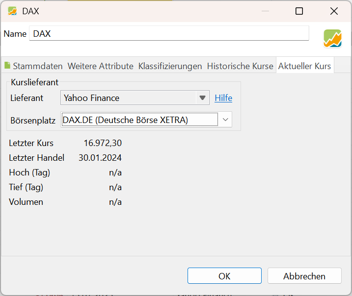 Bei mir werden die historischen Kurse für Lieferant “Yahoo Finance” und Börsenplatz ^GDAXI (default) nicht mehr aktualisiert. Bekomme diese Fehlermeldung: Downloadfehler bei Versuch 1 für Ticker-Symbol ^GDAXI: 429 Too Many Requests → ``https://query1.finance.yahoo.com/v8/finance/chart/^GDAXI?range=3mo&interval=1d