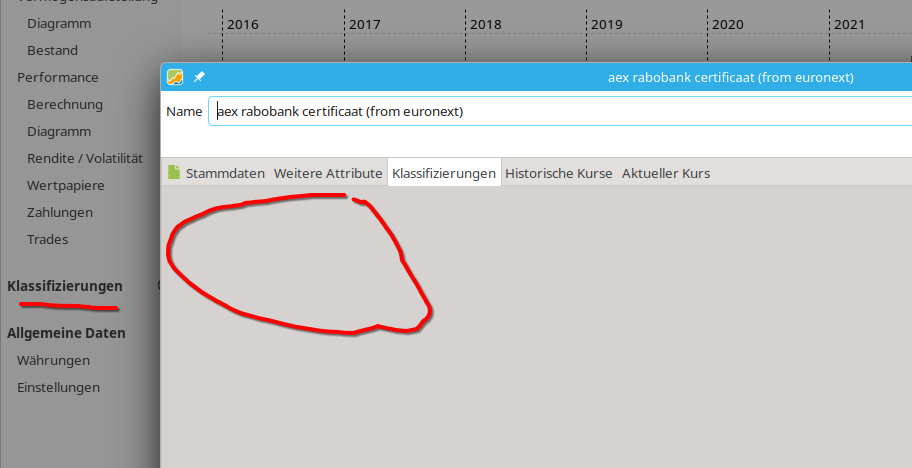 Ich habe heute PP instaliert und wollte direkt loslegen. Leider fehlt ein wichtiges feature die Klassifizierung. Egal welche Aktie oder etf ich hinzufüge, bleibt das tab “Klassifizierung” ausgegraut. Ich hoffe es kann mir hier jemand weiterhelfen.