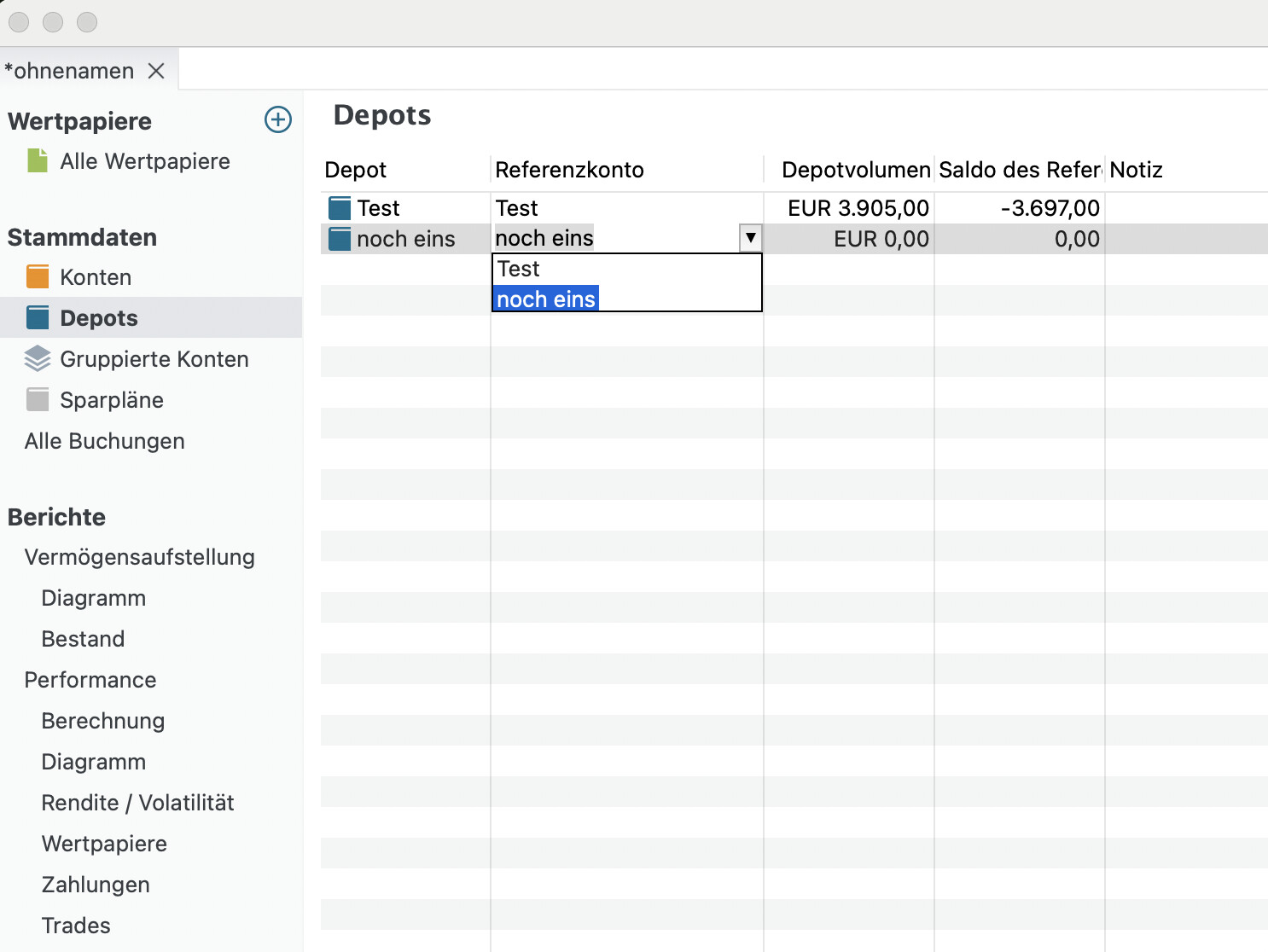 oder z.B. Klicken Sie bei der Depotübersicht in das Feld für die Auswahl des jeweiligen Referenzkontos