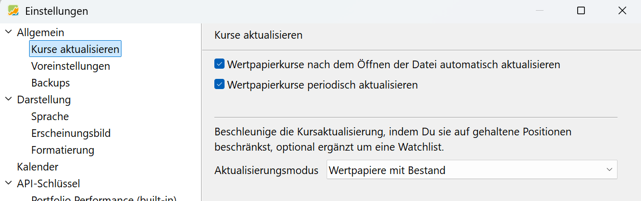 Mit Version 0.79.1 wird die Konfiguration auch bei dem initialen Download der Kurse berücksichtigt.