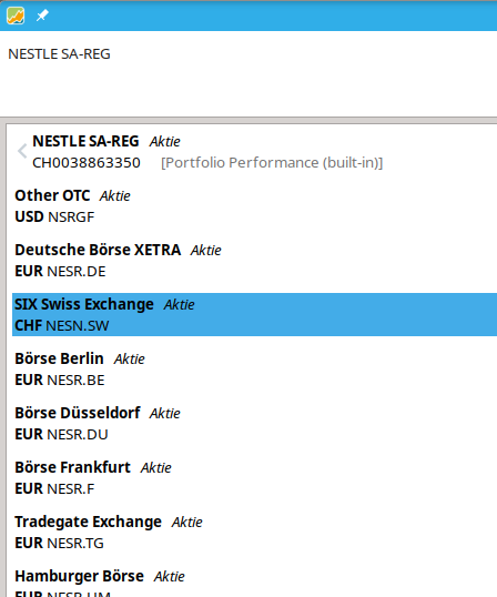 Ich habe jetzt versucht die betroffenen Wertpapiere auf EUR-Kurse umzustellen, aber so einfach ist das auch nicht, wenn das Wertpapier in meinem Portfolio Performance bis jetzt in CHF geführt wurde und dazu bereits Buchungen existieren. Mann müsste dann alle bestehenden Buchungen in CHF löschen, das Wertpapier neu in EUR anlegen und die Buchungen neu erstellen (in EUR). Oder gibt es eine einfachere Möglichkeit?