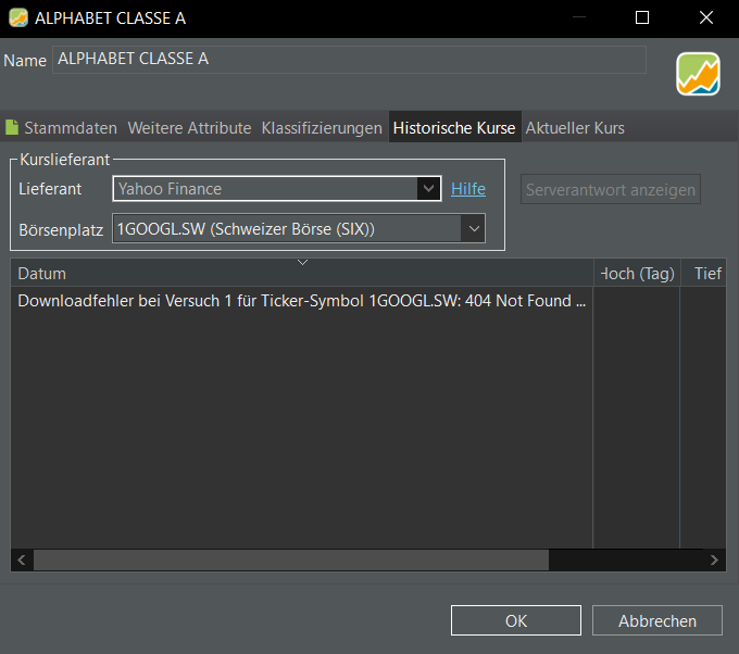 Beispiel Alphabet: Neues Wertpapier → “Alphabet” (oder auch die ISIN “US02079K3059”) im Suchfeld eintippen → Suchen. In den angezeigten Ergebnissen in der ersten Zeile (“Portfolio Performance (built-in)” sehe ich nur Kurse in EUR, USD und PLN. Aber nicht in CHF! Unterstützt Portfolio Performance wirklich keine Kurse in CHF?