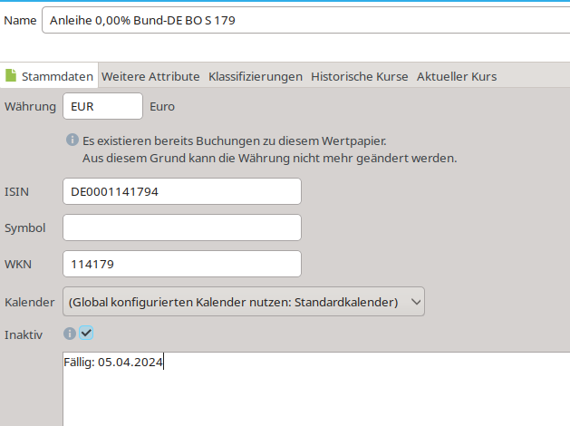 Mag sein das die Wertpapiersuche für Anleihen nicht viel taugt, für solche Fälle gibt es den Punkt “leeres Wertpapier anlegen” statt “neues Wertpapier”. So ein leeres Wertpapier ist mit allem befüllbar was Dir wichtig ist.