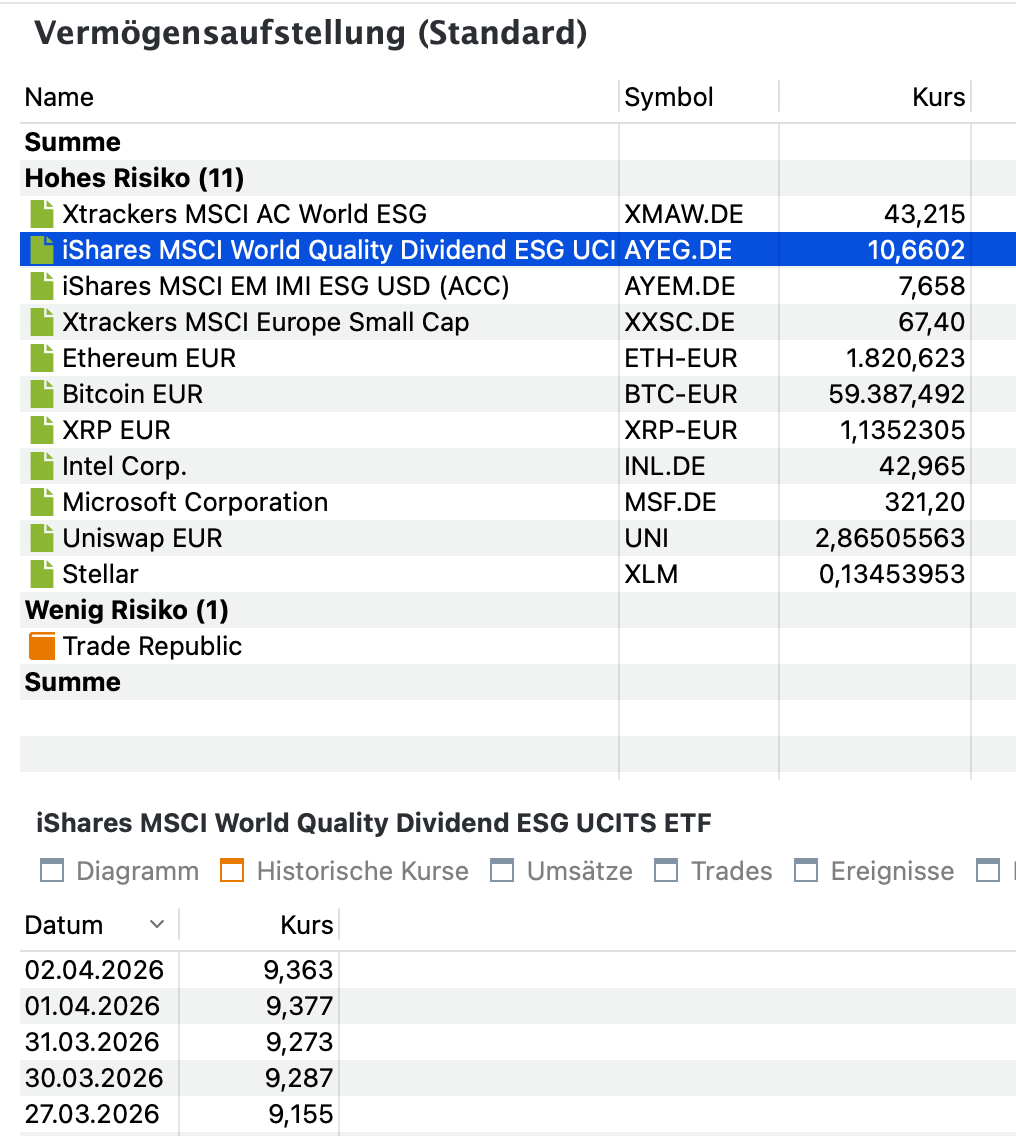 p.p.s kann man das irgendwie manuell korrigieren, damit man für ein rebalancing genaurere zahlen hat? → gelöst (Neuen Wert hinzugefügt unter historischer Kurs)