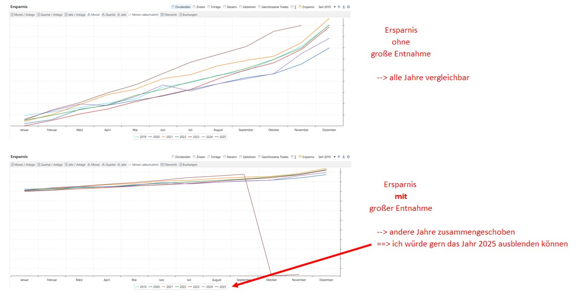 Ich würde gerne das einzelne (außergewöhnliche) Jahr 2025 ausblenden können, damit ich alle andern Jahre schön miteinander vergleichen kann.