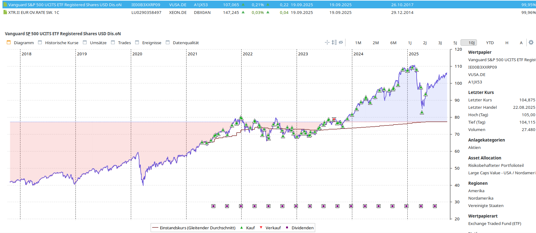 Ein paar Tage später fehlten dann immer die Kurse des aktuellen Börsentags und als letzter Handelstag wurde für alle ETFs der 22.08.2025 angezeigt: