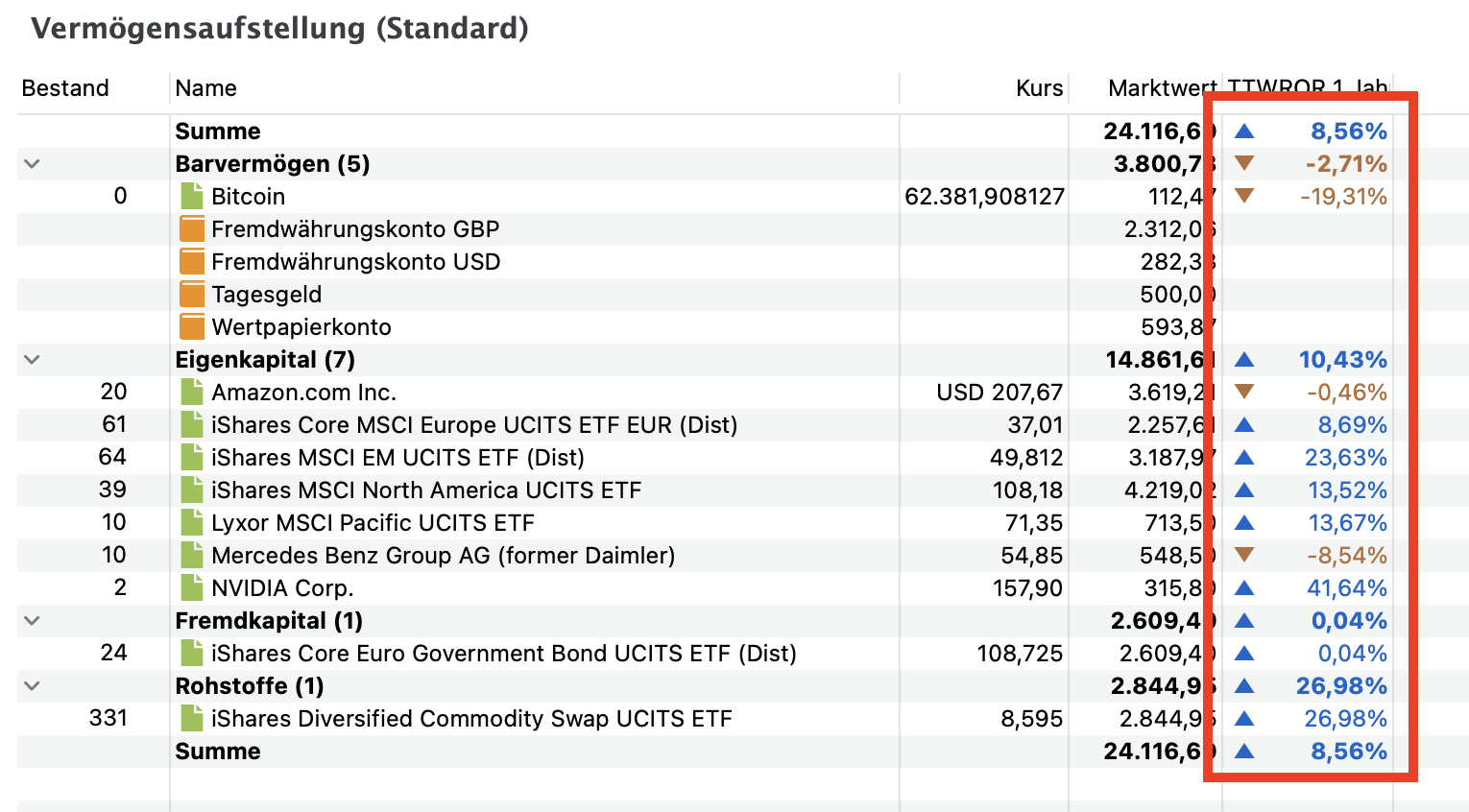 Mit der letzten Version habe ich die Möglichkeit für einklappbare Kategorien in der Vermögensaufstellung veröffentlicht. Leider funktioniert das noch nicht gut genug: Einige Dinge sind langsam, Tooltips funktionieren nicht, und unter “Stammdaten” ist das Verhalten nicht zuverlässig.
