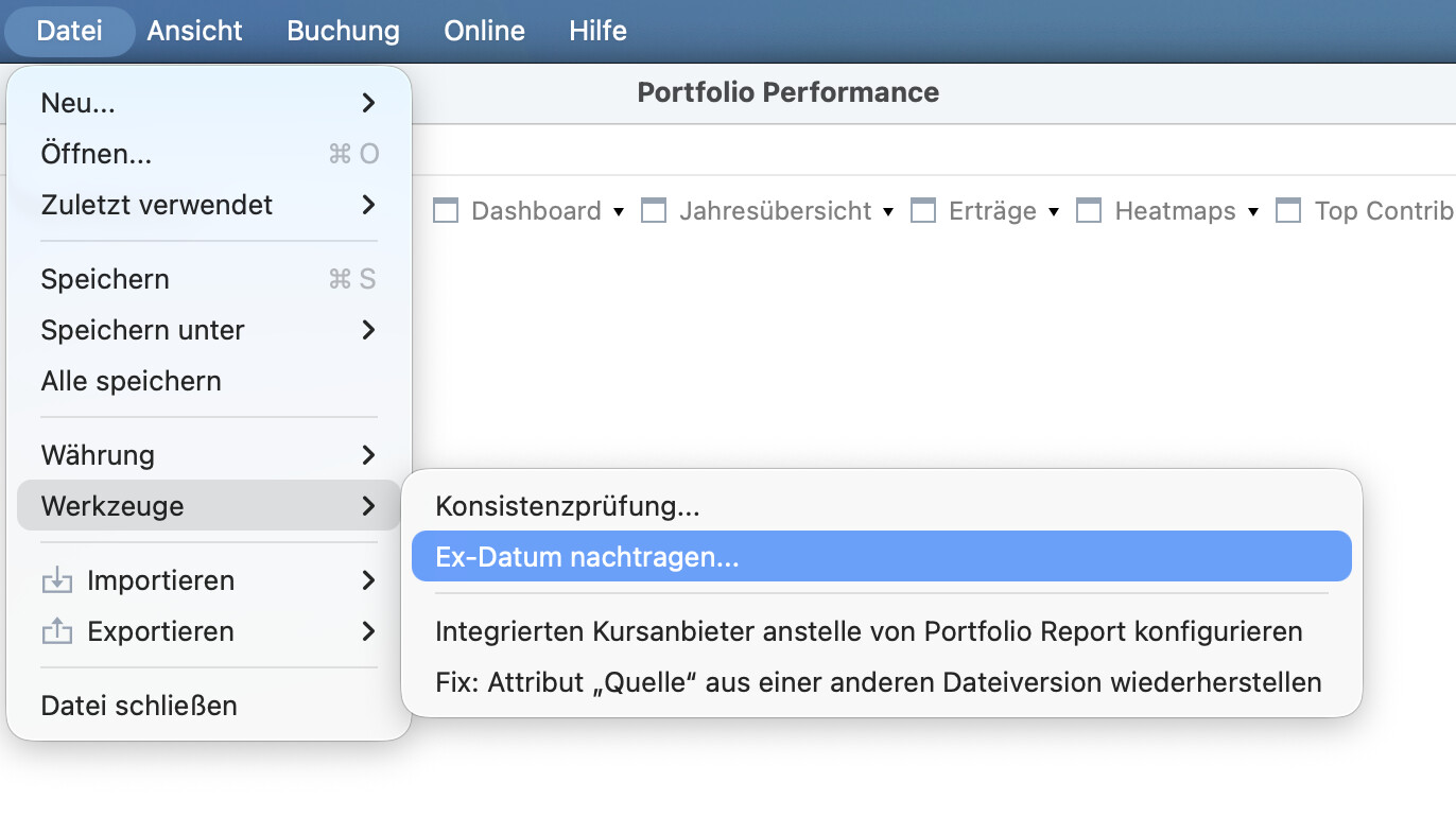 Neu: Werkzeug zum Nachpflegen der Ex-Daten bestehender Dividendenbuchungen hinzugefügt.
