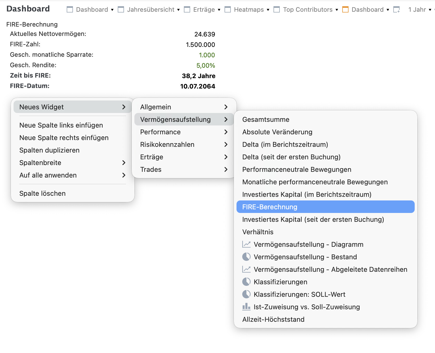 Neu: FIRE-Berechnungs-Widget (Financial Independence, Retire Early) hinzugefügt.