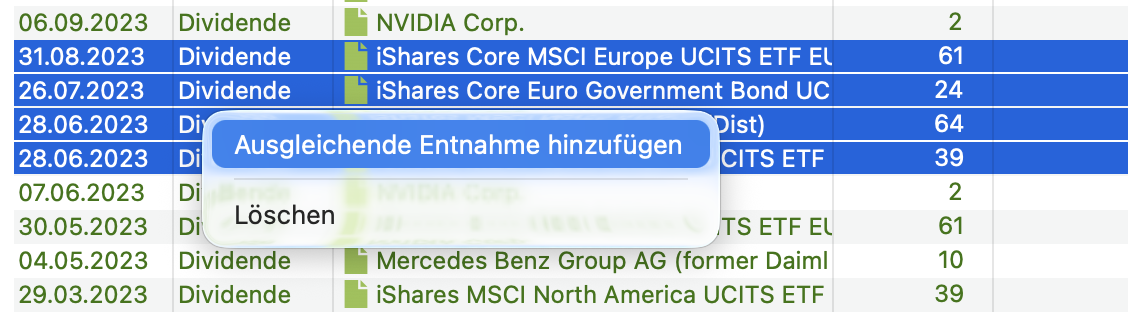 Neu: Kontextaktion zum Erstellen von Stornotransaktionen für eine gewählte Dividendenzahlung