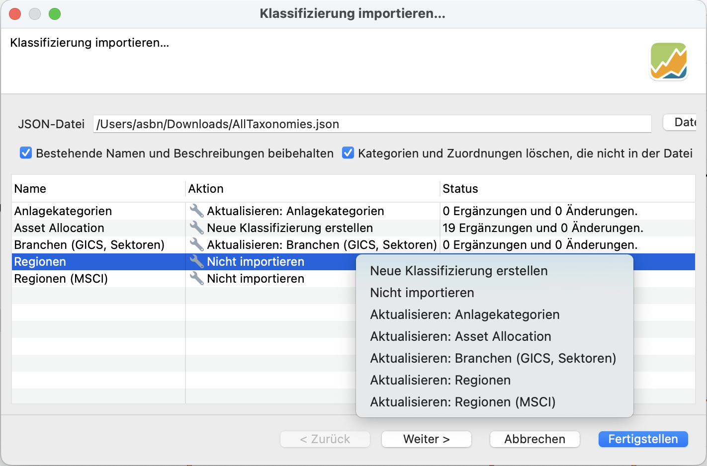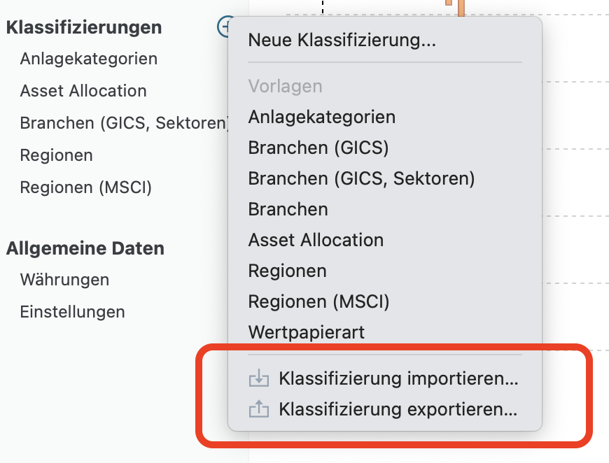 Mit dieser Version könnt Ihr die Struktur einer Klassifizierung - also die Kategorien und die zugewiesenen Wertpapiere - exportieren. Und dann wieder importieren. Dabei werden die fehlenden Kategorien hinzufügt und die Zuordnung der Wertpapiere aktualisiert.