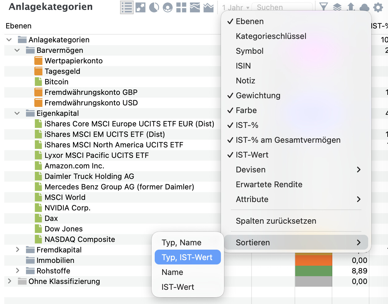 Und auch als Spalte in der Liste der Wertpapiere: