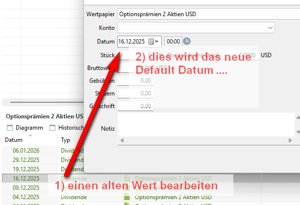 Bei der neuen Buchung ist das Datum per default das der editierten Buchung. Ich kann aber nicht sagen, ob das je anders war. Habe ich nie gebraucht/drauf geachtet.