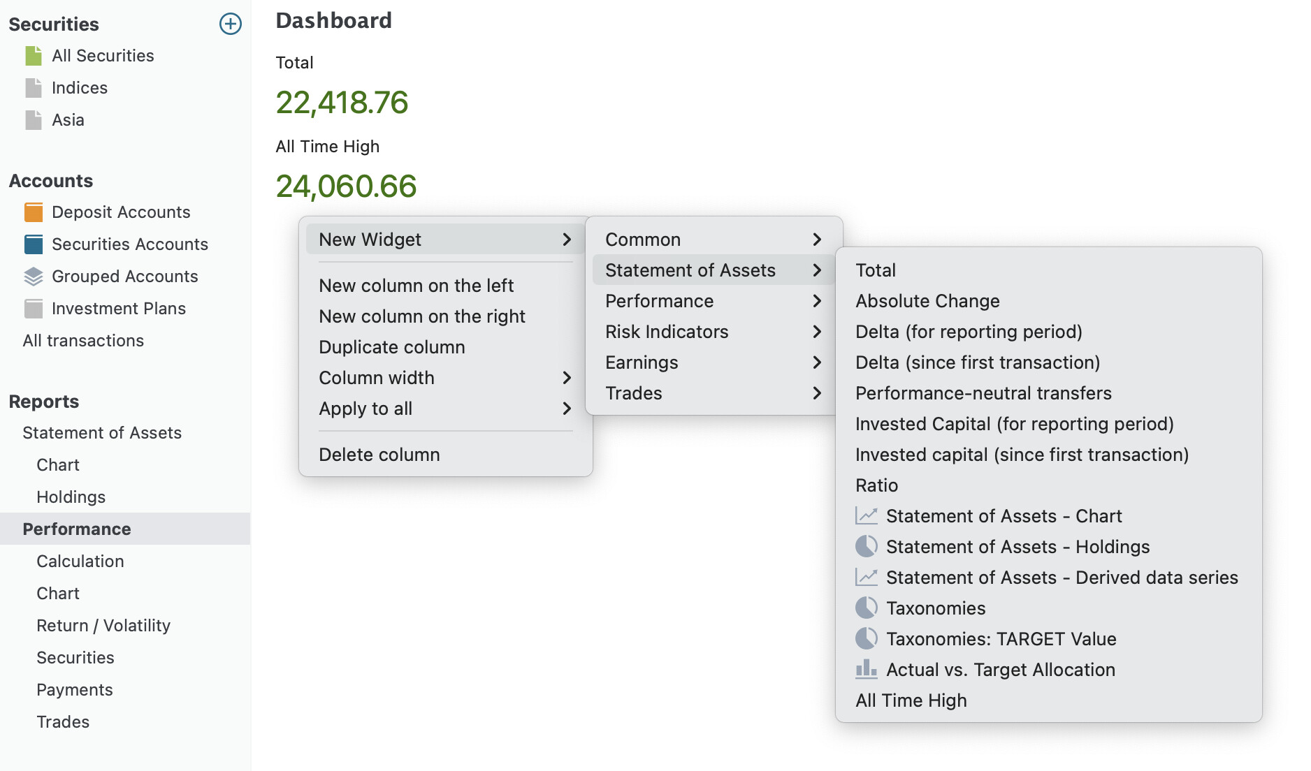 This version is a regular maintenance release. On one hand, as always, the PDF importers are updated (yes, including Trade Republic). On the other hand, we have optimized the calculations in the statement of assets, which now run faster - especially noticeable if the table has many columns.