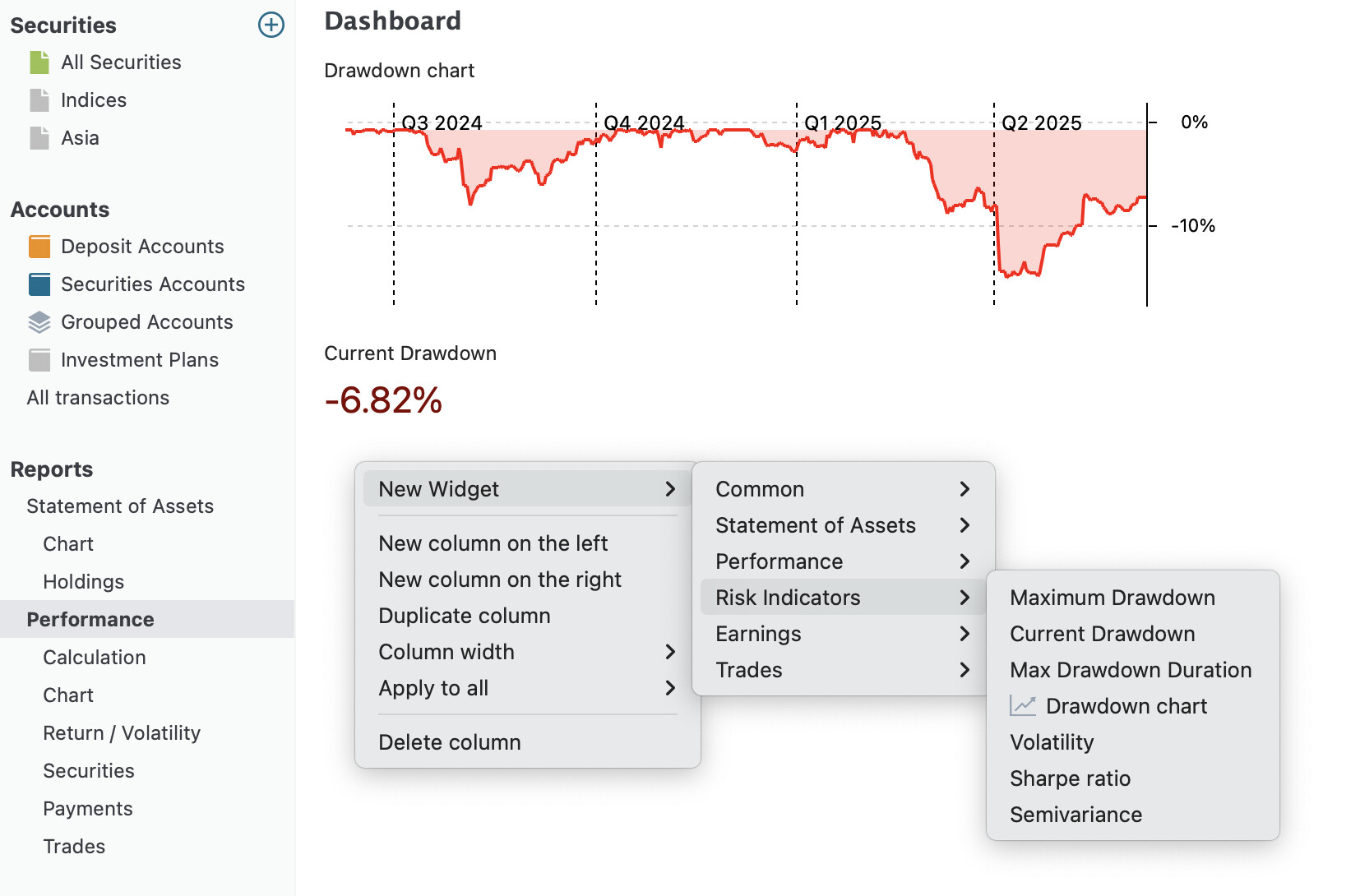New: Widgets for current drawdown and all-time high of your total portfolio