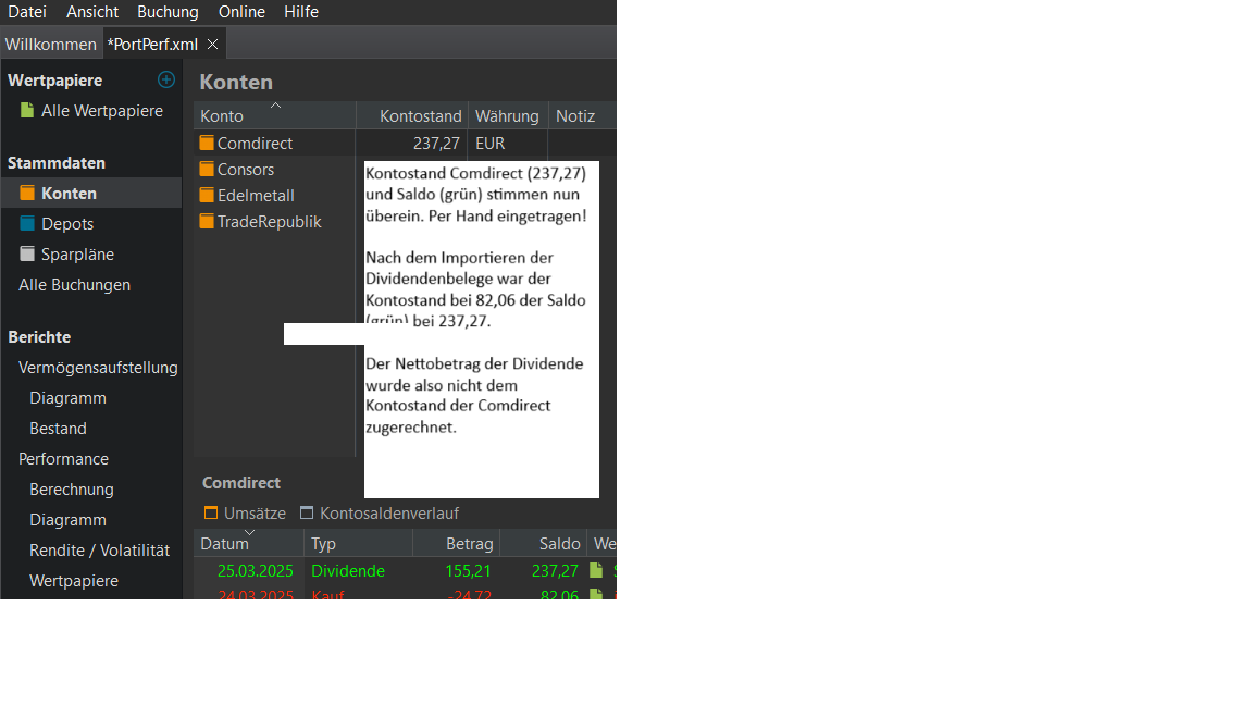 Dadurch wird in die Dividendenzahlungen (nur bei der comdirect) der Bruttobetrag eingebucht.