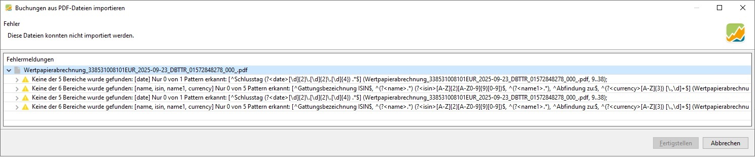 Der PDF-Import der letzten MaxBlue-Wertpapierabrechnung schlägt fehl. Anbei das Debug-File.
