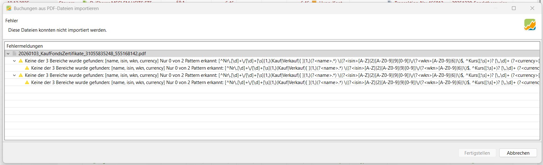 bei mir funktioniert der PDF-Import von Wertpapierankäufen aktuell nicht.