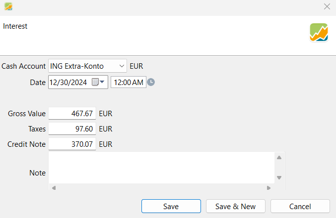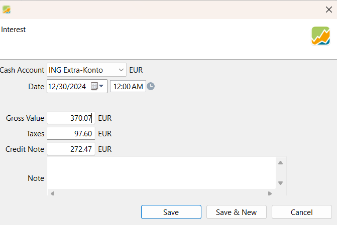 Auch die Zinsertrag is nicht korrekt importiert.