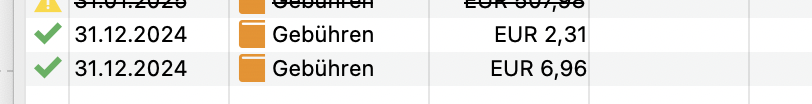 Moin, beim Import der Quirin Kontenauszüge werden die gezahlten Bestandsprovisionen (haben) fälschlicherweise als Gebühr (soll) importiert. Wäre cool, wenn sich das mal jemand anguckt. Anbei 2 Fotos, einmal Shot aus dem Auszug, einmal wie es im Importer falsch angezeigt wird, sowie ein debug dazu. Danke, C.