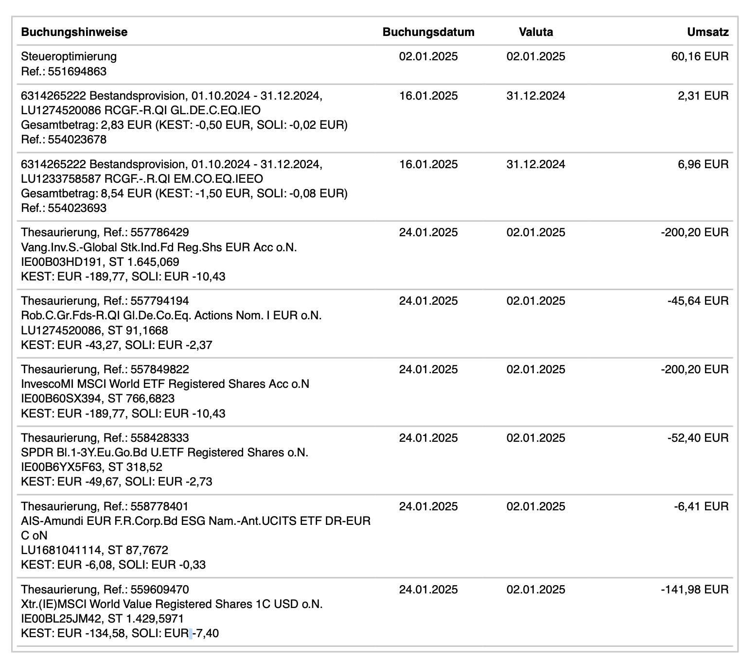 Thesaurierung, Ref.: 558778401 24.01.2025 02.01.2025 -6,41 EUR