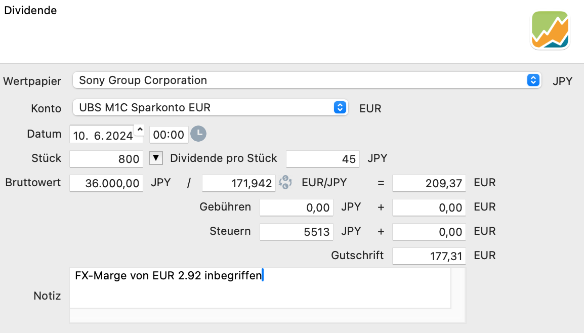 Als ich gerade selbst rumgespielt habe, habe ich es genauso gebucht, wie du es nun als (finales) Ergebnis programmiert hast. Daher kann ich da gut mitgehen. Finde es aber ehrlich gesagt immer noch merkwürdig, weil wir bei Währungskursen ansonsten fix rechnen. Z.B. wenn Dividende in USD gezahlt auf EUR Konto und auf PDF steht Dividende in USD, Steuer in USD, Währungskurs USD/EUR, Valuta EUR. Dann werden alle Werte in PP in EUR gebucht. Es wird also mit dem auf dem Dokument stehenden Kurs gerechnet.