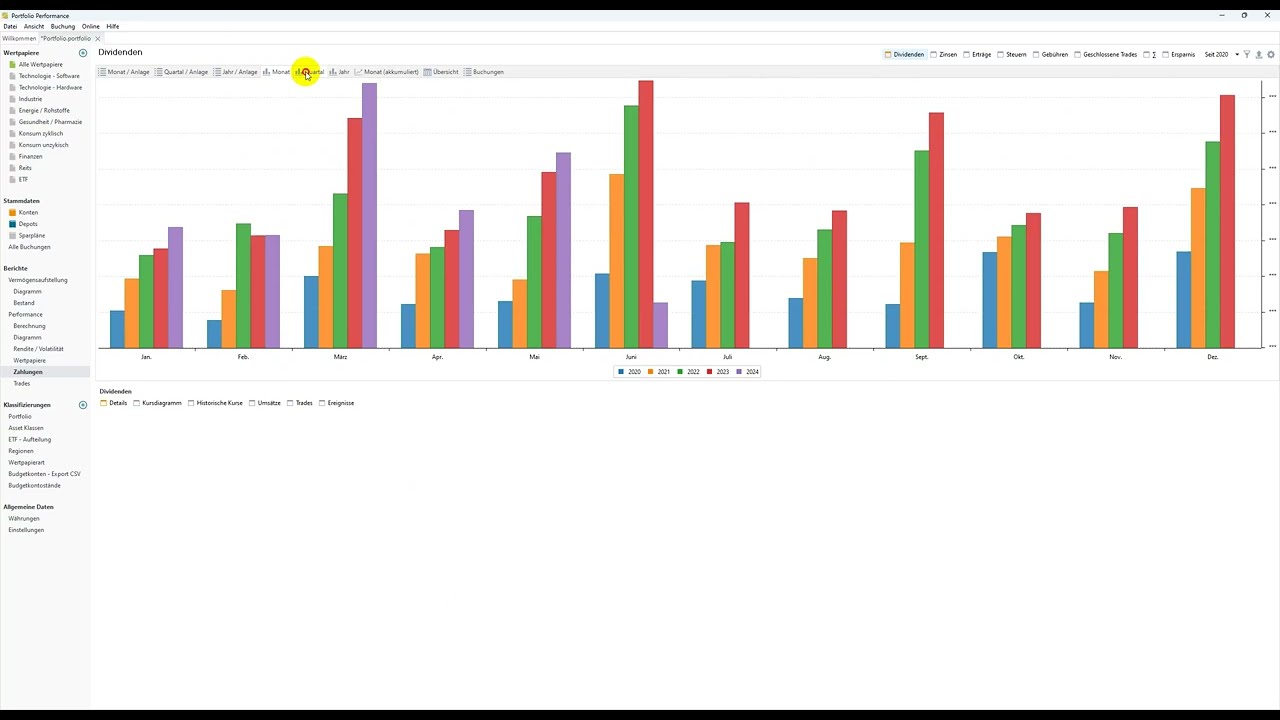 Es finden in diesem Portfolio ca. 3000 Buchungen pro Jahr statt. Es sind hauptsächlich Sparplanausführungen und Dividendenzahlung. Mir ist das klar, dass dieses sehr viele Buchungen sind. Die Portfolio Datei ist ca. 6,3MB groß und ich nutze das Binärformat.