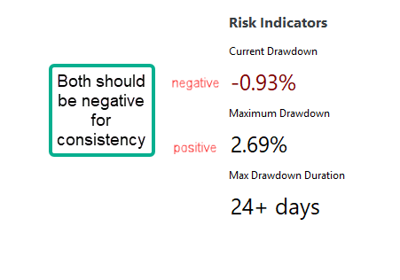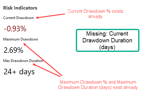 The metric for the Dashboard, similar to the other metrics I mentioned. The Current Drawdown Duration metric compliments the Current Drawdown metric.