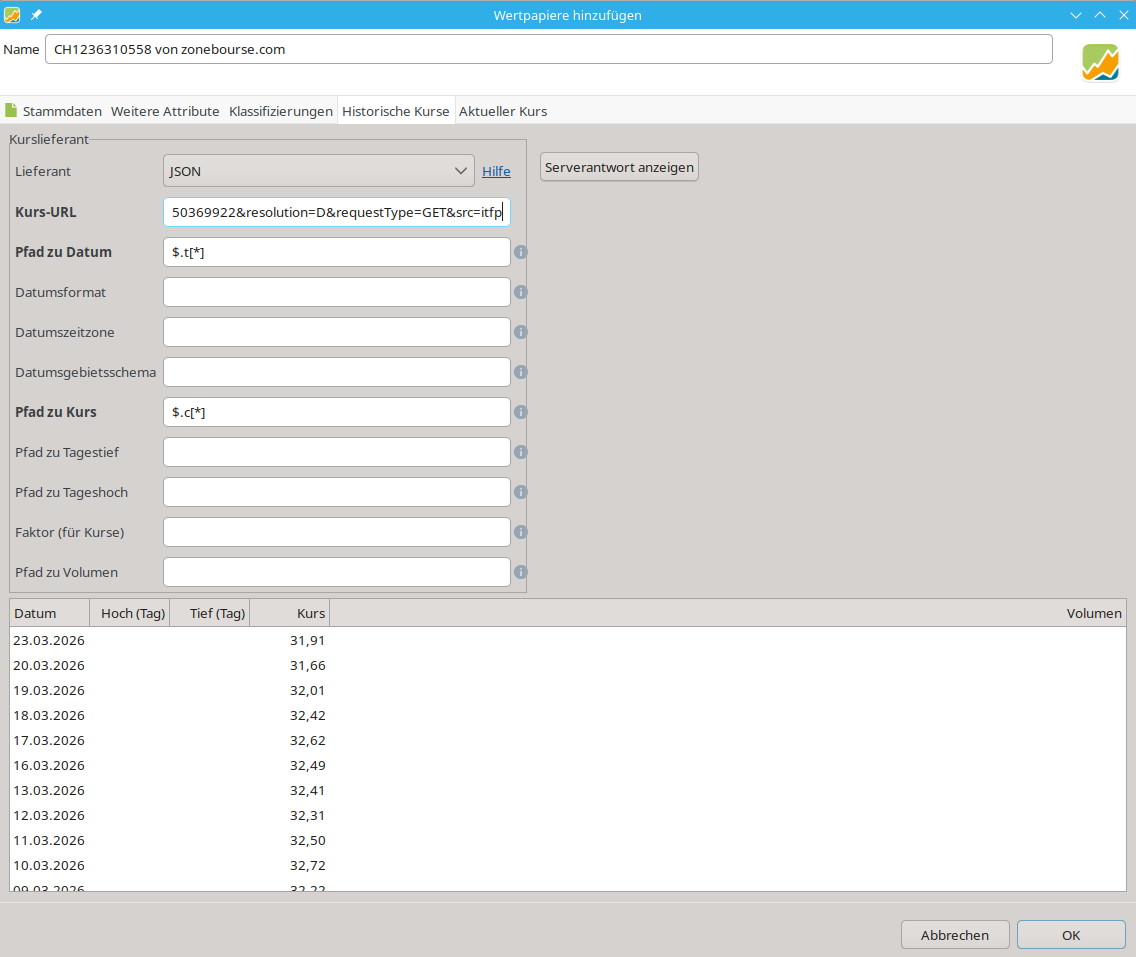probeweise habe ich mal deinen letztgenannten Fonds bei PP in die Wertpapier-Suchen-Maske eingetragen. Dort wurde mir das Symbol vorgeschlagen. Selbst unter Yahoo Finance gibt es CHF Kurse mit der Einstellung SRFCHA.SW (Schweizer Börse (SIX)).