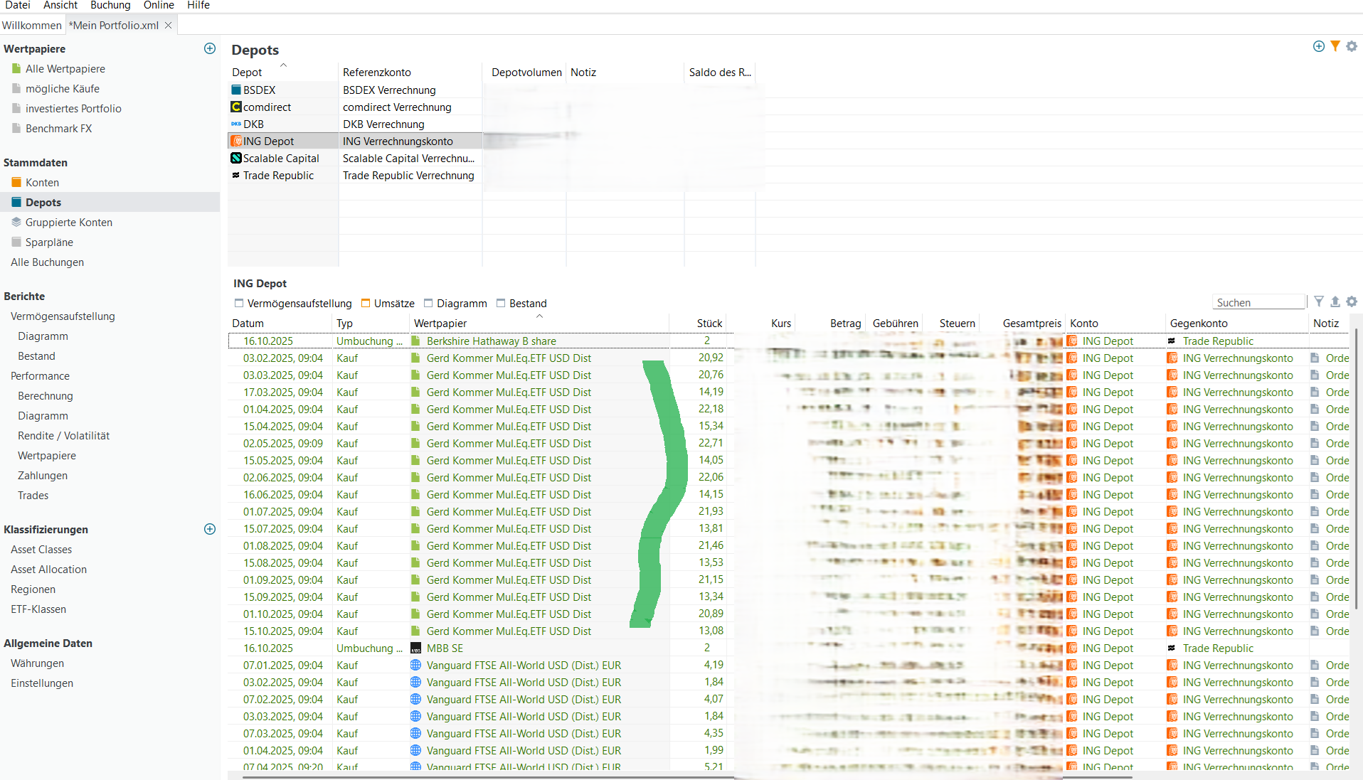 Was sagen in der Depotaufstellung der Reiter zu den Buchungen (Umsätze?)? Was passiert bei alle Buchungen (ggf. exportieren) und nur auf das Papier filtern?