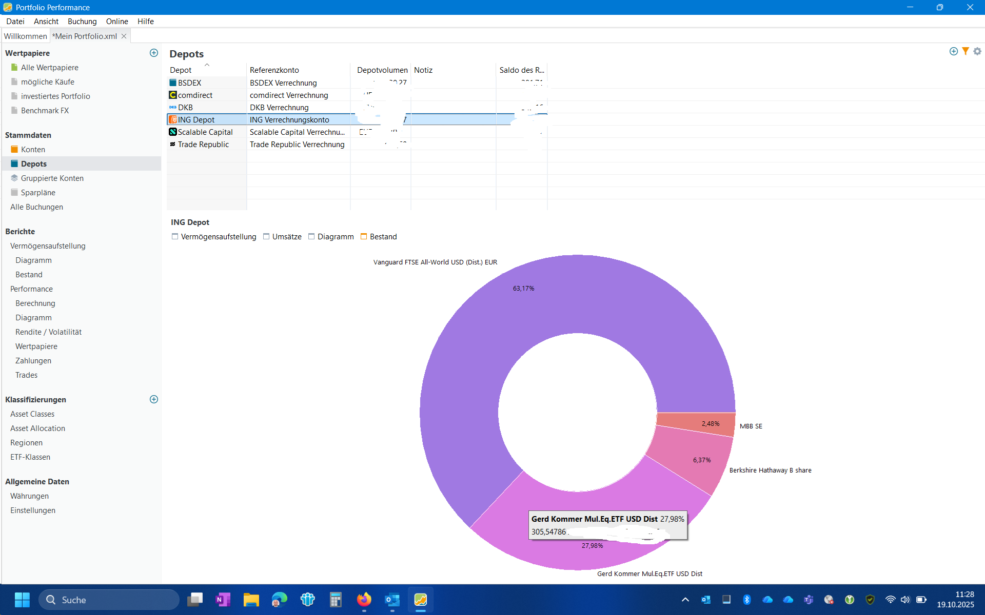 Ich habe etwas bei mir rumgespielt, ein neues Depot erstellt, dort neue Anteile eingeliefert. Dieses neue Depot dann auf inaktiv gestellt. So komme ich auf das gleiche Verhalten wie bei dir, dass in der Vermögensaufstellung eine höhere Stückzahl angezeigt wird.