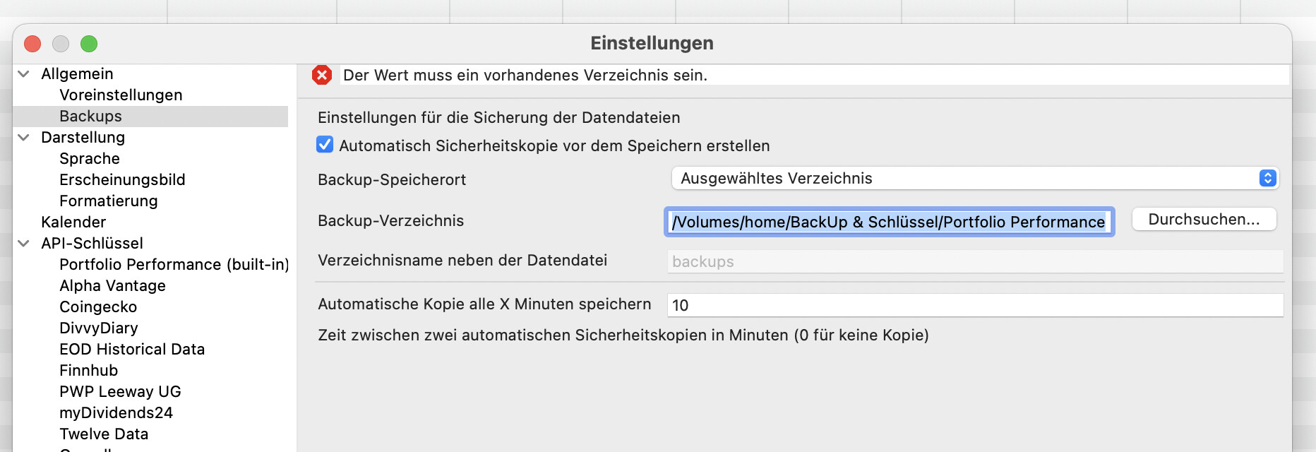 Obwohl ich nun ohne “&” und “ü” gearbeitet habe, und der path auf der Synology NAS damit recht simple war, ist es zu einem Java Heap Fehler gekommen. @Rafa danke für den Hinweis. Der Thread hier ist also aufzuteilen. Für das Heap Thema setze ich das in dem Thread von @Ragas fort, bzgl. der nicht als Fehlermeldung auftretenden Thematik mit dem Path wäre es ggf gut, sich das im Code mal anzusehen. Wenn zum Bsp. ein User den Path auf seiner Synology umbenennt, und ihn PP dann für das Backup nicht mehr findet, wäre es cool, wenn ein Fehlerfenster hochpoppt und das Backup nicht einfach unterlassen wird (nur das rote Kreuz auf dem Tab in dem Menü ist sicher nicht ausreichend, da guckt man ja nicht jeden Tag). Zweites Thema ist, das PP im Zusammenhang mit Sonderzeichen im Pfadnamen auf einer Synology NAS auf dem Mac irgendein Problem zu haben. Wenn ich hier zusätzliche Daten meiner Konstellation posten soll und sich das jemand ansehen mag, gerne Info.
