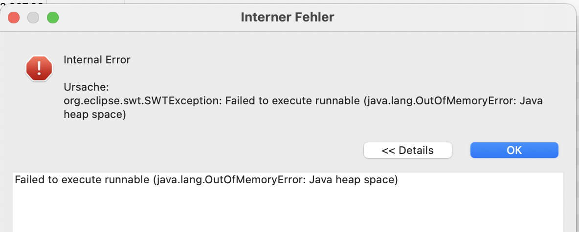 Text “out of Java heap space”, keine weiteren Angaben